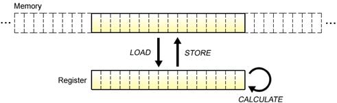 Performance of the SPE program can perfectly be maintained when load and store interactions with the memory are unnecessary to be performed. Calculation of the counter variable in the for statement, for example, will cause no problem as it is performed within the register.